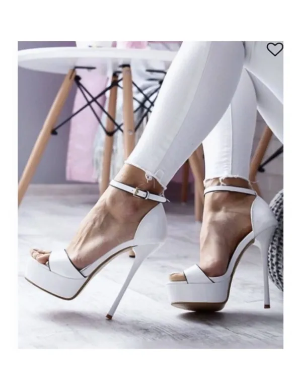 Tacco a spillo di 14 centimetri e plateau di 3,5 cm.