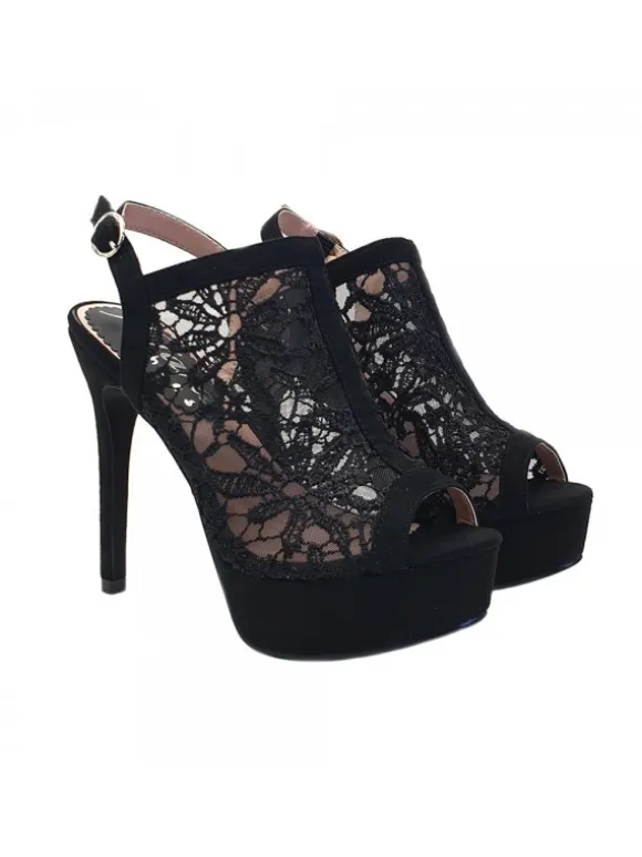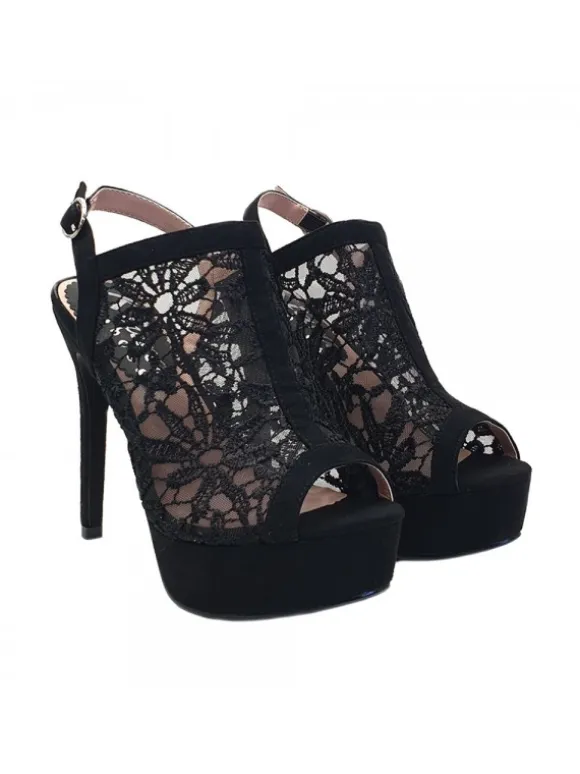 Sandali sexy in nero stile macramè,