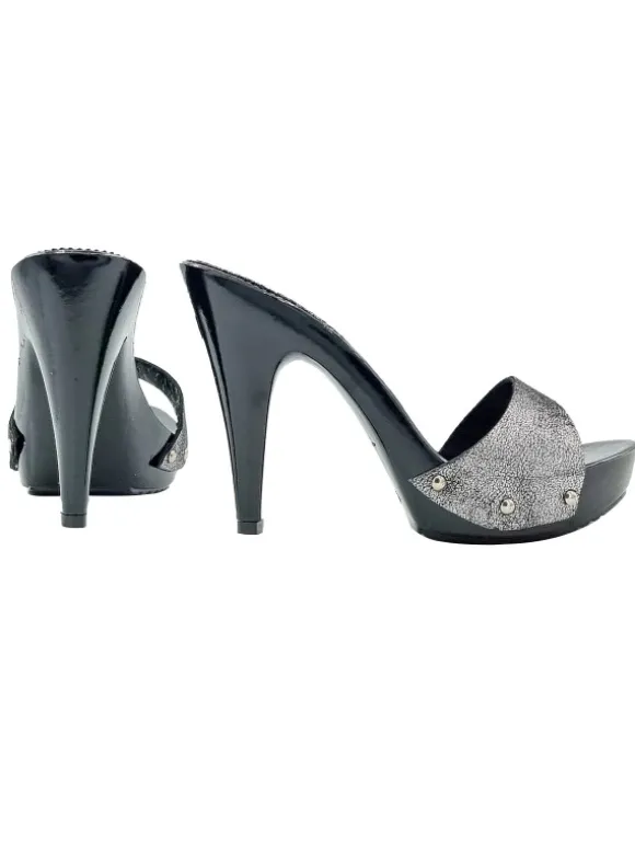 Zoccoli da donna con base nera effetto legno laccato