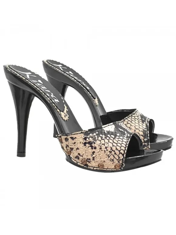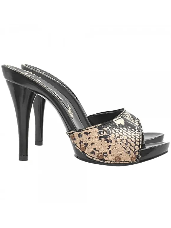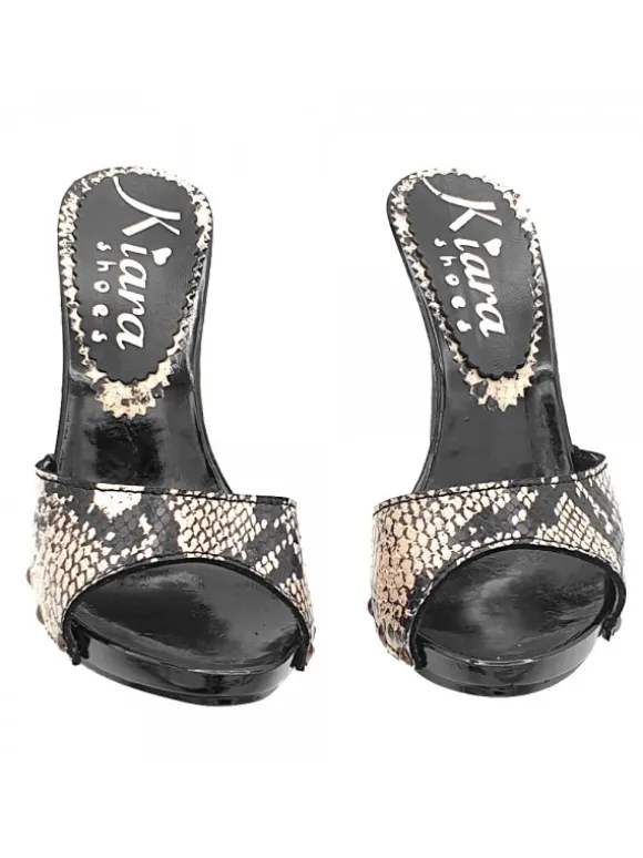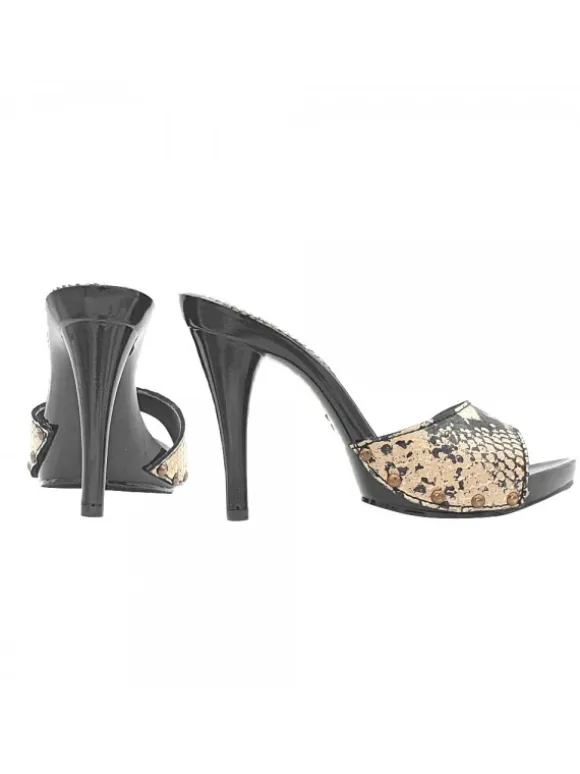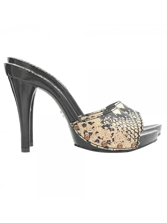 Zoccoli da donna con base nera laccata effetto legno